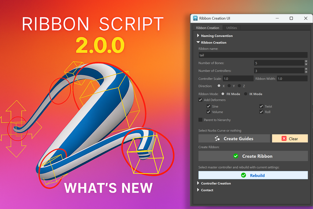 Supercharge your rigging workflow in Autodesk Maya with Ribbon Nacho, a powerful, fully customizable ribbon rig generator designed for both film-quality rigs and game-ready exports. Whether you’re building spines, tails, ropes, or anything bendy—this tool handles it all, clean and fast.